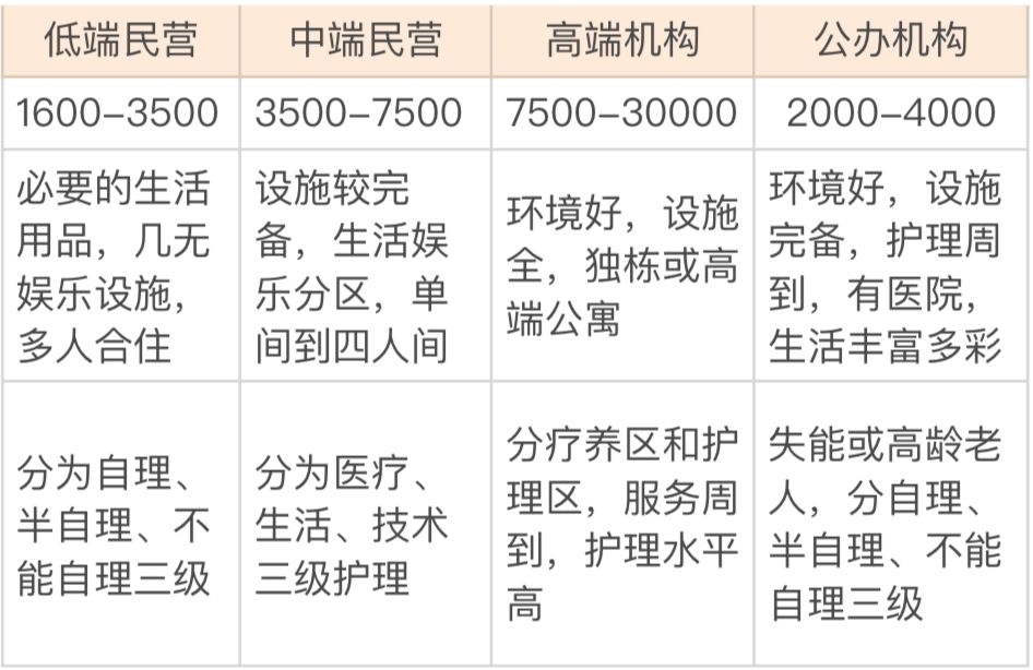 · 养老院生活条件和月均花费。数据来源:凤凰weekly